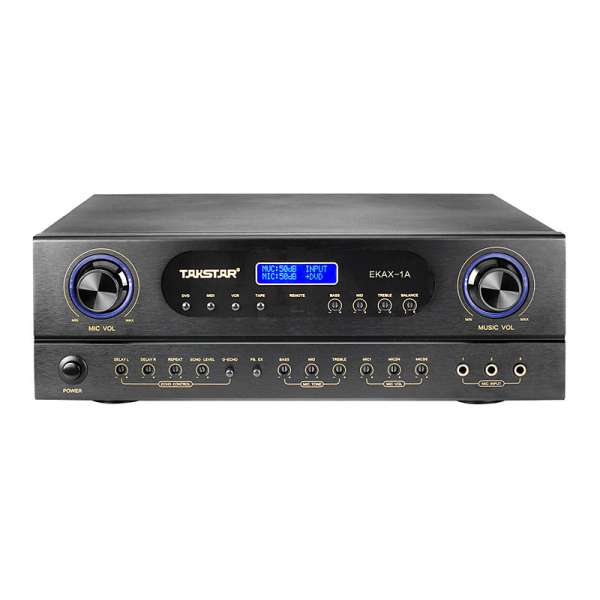 EKAX-1A Amply Karaoke Takstar sử dụng kết hợp với các dòng loa trở kháng thấp 8Ω cho công suất phát tới 150W và 4Ω cho công suất phát tới 225W, 2 kênh tiêng biệt. Tăng âm có sẵn tinh chỉnh 3 băng lần LF, MF, HF cho chất tiếng cực hay