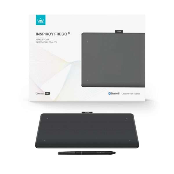 Huion Inspiroy Frego có thể kết nối với PC hoặc máy tính xách tay , điện thoại thông minh và máy tính bảng qua Bluetooth . Frego có thời lượng pin mạnh mẽ có thể sạc đầy trong 2.5 giờ , cung cấp thời gian sử dụng lên đến 24 giờ.