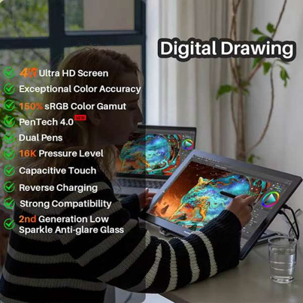 – Độ phân giải bảng vẽ 5080lpi, Bút PW550 Pentech 3.0, không pin 8192 mức lực nhấn, độ phản hồi >300pps, cảm ứng ±60° nghiêng.