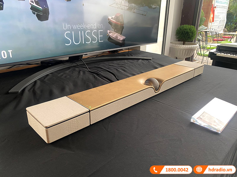 - Thiết kế mạ vàng, nhỏ gọn, sang trọng. Là phiên bản cao cấp của loa soundbar Devialet Dione.