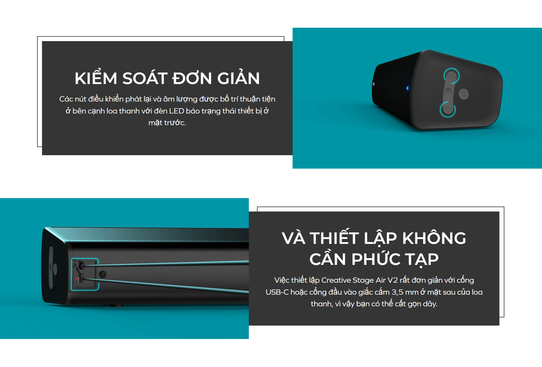 Creative Stage Air V2 là một soundbar desktop 2 trong 1 xuất sắc, vừa là loa máy tính cố định qua USB Audio, vừa là loa Bluetooth di động với pin tích hợp. Với thiết kế nhỏ gọn, công suất 20W ấn tượng và khả năng kết nối đa dạng, đây là sự lựa chọn linh hoạt và hiệu quả cho mọi nhu cầu giải trí và công việc.