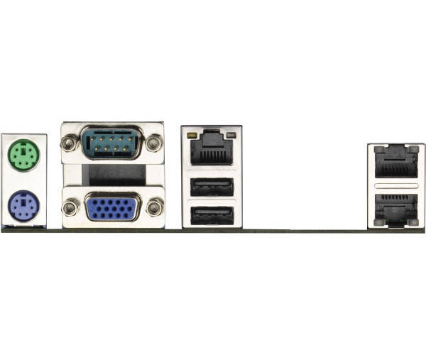 | Cổng giao tiếp ngoài | 2 x PS/2 keyboard/mouse, 1 x D-SUB, 1 x Com, 2 x USB 2.0, 2 x LAN (RJ45) port. |