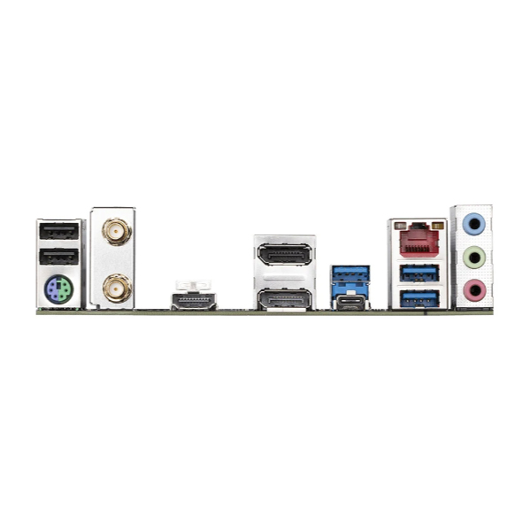 | Cổng giao tiếp ngoài | 2 x USB 2.0/1.1 ports 1 x PS/2 keyboard/mouse port 1 x D-Sub port 1 x HDMI port 2 x DisplayPorts 3 x USB 3.2 Gen 1 ports 1 x USB Type-C® port, with USB 3.2 Gen 2 support 1 x RJ-45 port 3 x audio jacks |