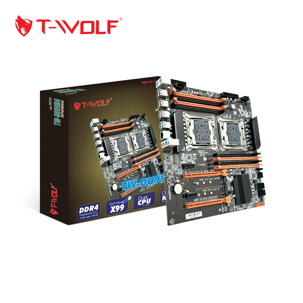 MAINBOARD T-WOLF Xeon TW-DU99D4 (2CPU*LGA2011-3E5V3-V4/8*DDR4(ECC/NON-ECC)/Lan 1000/2*NVMe-M.2 Sata/2*PCIe16X/2*PCIe1X) BH 12T