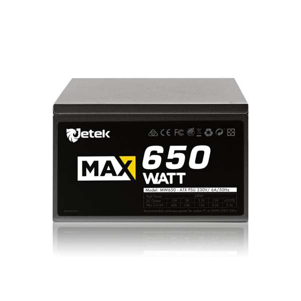 Với công suất tối đa 650W, JETEK MW650 đủ sức đáp ứng nhu cầu năng lượng cho các hệ thống máy tính từ trung bình đến cao cấp. Nó có thể hỗ trợ các card đồ họa hiện đại và nhiều linh kiện khác, giúp tăng cường khả năng xử lý và trải nghiệm người dùng.