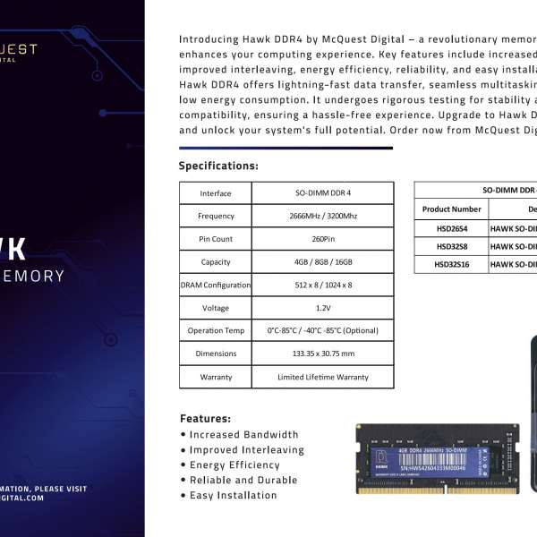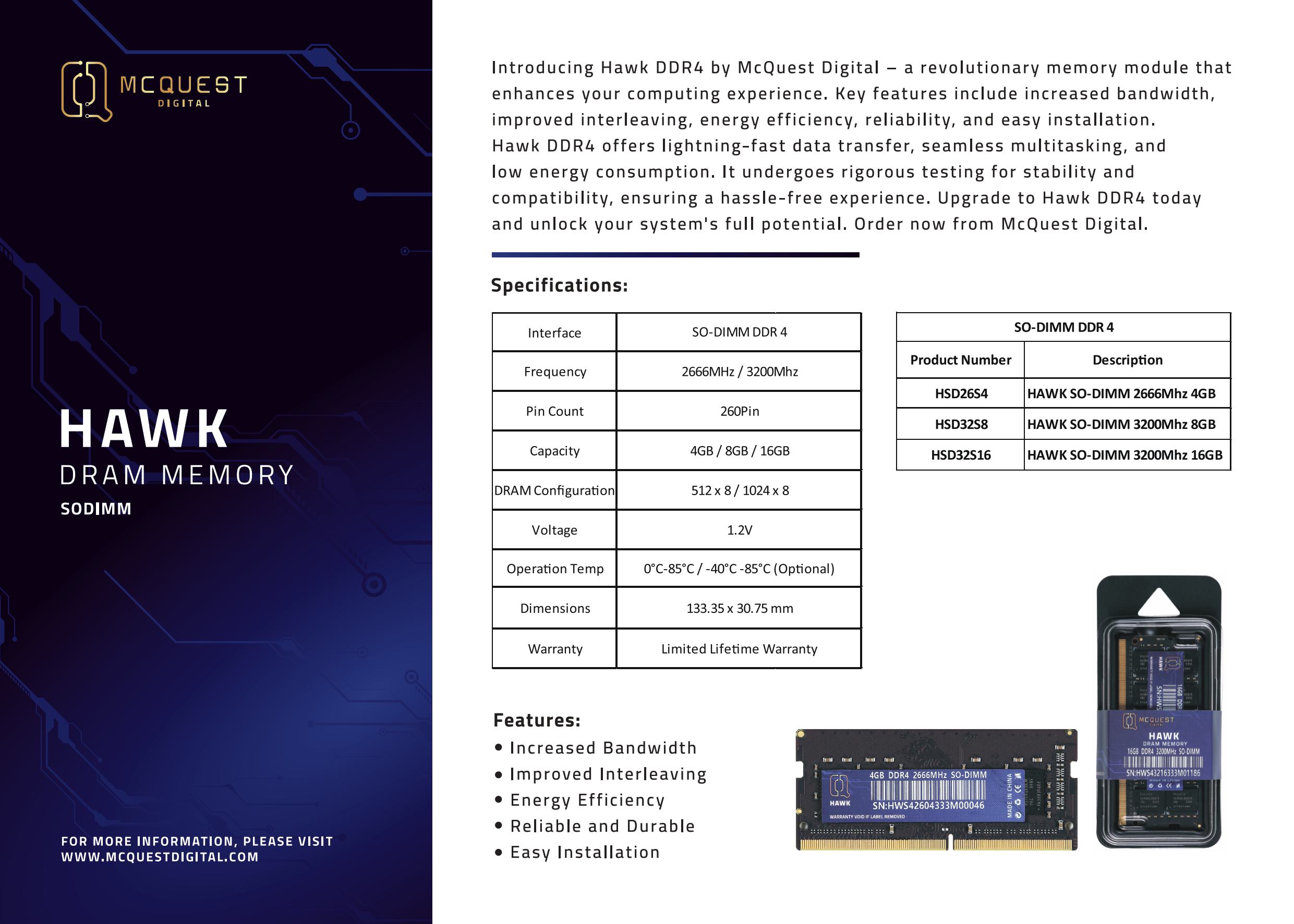 RAM McQuest Hawk DDR4 chính hãng – chip Hynix, bus 3200MHz, hiệu năng mạnh mẽ, ổn định, bảo hành 3 năm, giá tốt tại Tứ Gia.