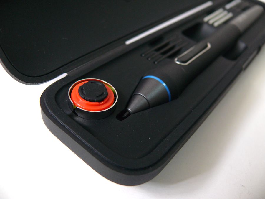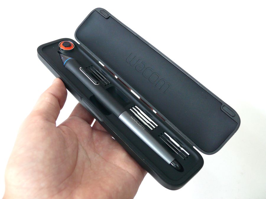 Và một lần nữa sự chu đáo và hướng tới tính năng di động của thiết bị lại được thể hiện qua một phụ kiện khá đặc biệt kèm theo: Chiếc hộpbút nhỏ gọn với nắp đậy nam châm và chứa dủ bộ 9 ngòi bút, dụng cụ thay ngòi vàcác vòng đánh dấu bút nhiều màu sắc, dĩ nhiên là cả chiếc bút cảm ứng không dùng pin nối tiếng của Wacom.
