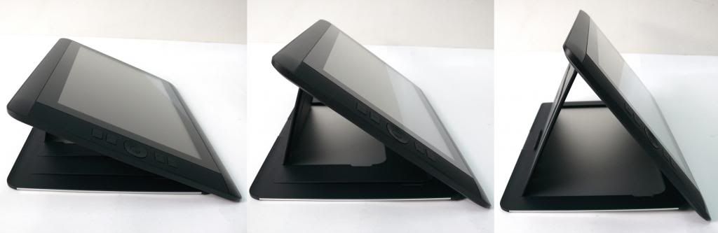 Sử dụng phần giá đỡ tách rời, thoạt nghe có vẻ “lỉnh kỉnh”hơn so với phiên bản 12” với giá đỡ gắn liền ngay phía sau, nhưng ngược lại, cách thiết kế này có dụng ý riêng khi độ dày của màn hình 13HD chỉ bằng một nửa so với Cintiq 12”. Với độ dày này, Cintiq 13HD khi không đặt trên giá đỡ có thể trở thành một thiết bị cầm tay năng động, sử dụng được ở nhiều tư thế thoải mái không kém gì các loại tablet khác. Thử tưởng tượng bạn có thể đặt HD13 trên đầu gối ngồi vẽ ở bất cứ nơi nào trong nhà, không khác biệt mấy so với việc cầm 1chiếc máy tính bảng thông thường.
