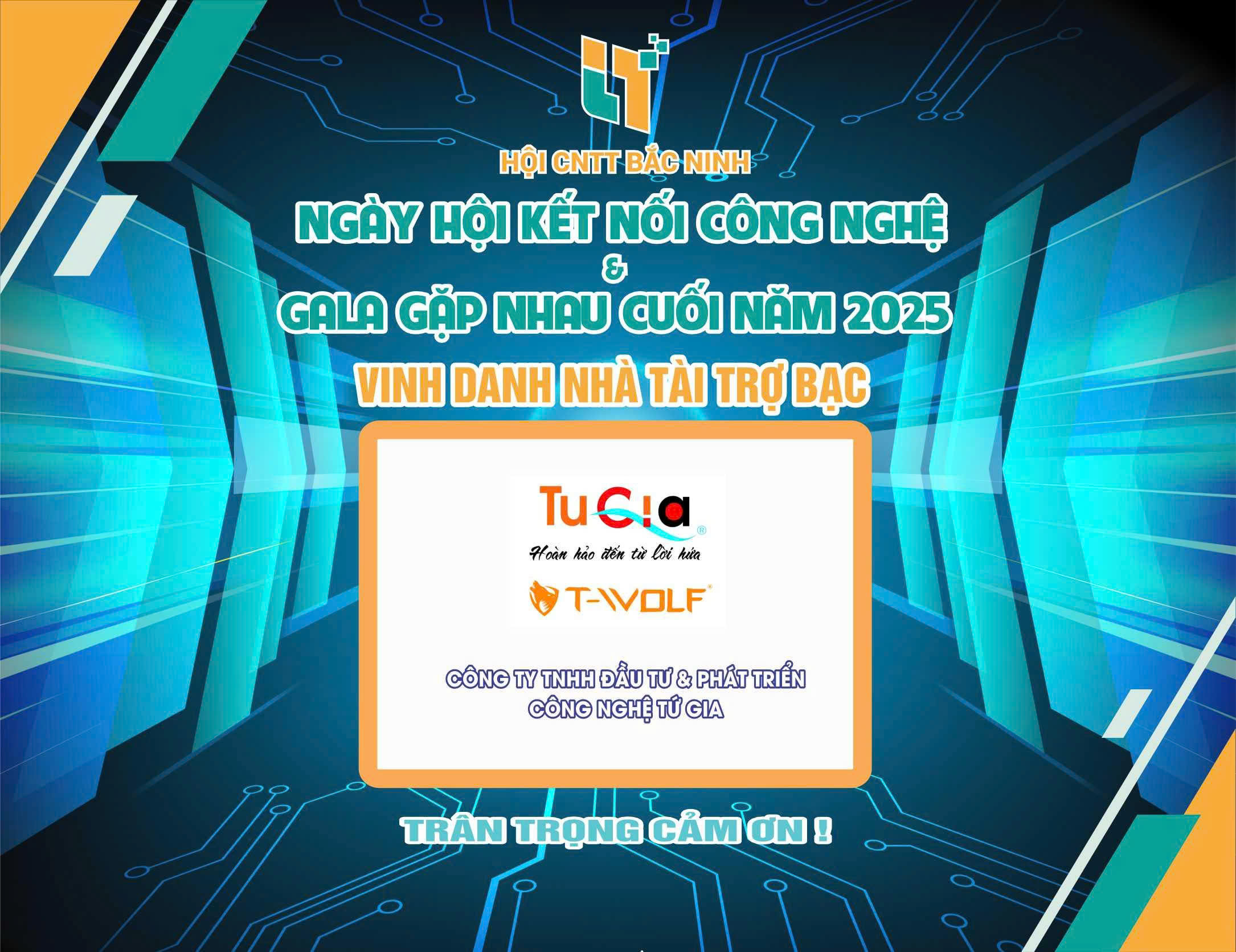 TỨ GIA – T-WOLF TRỞ THÀNH NHÀ TÀI TRỢ BẠC TẠI “NGÀY HỘI KẾT NỐI CÔNG NGHỆ & GALA CUỐI NĂM 2025” DO HỘI CNTT BẮC NINH TỔ CHỨC