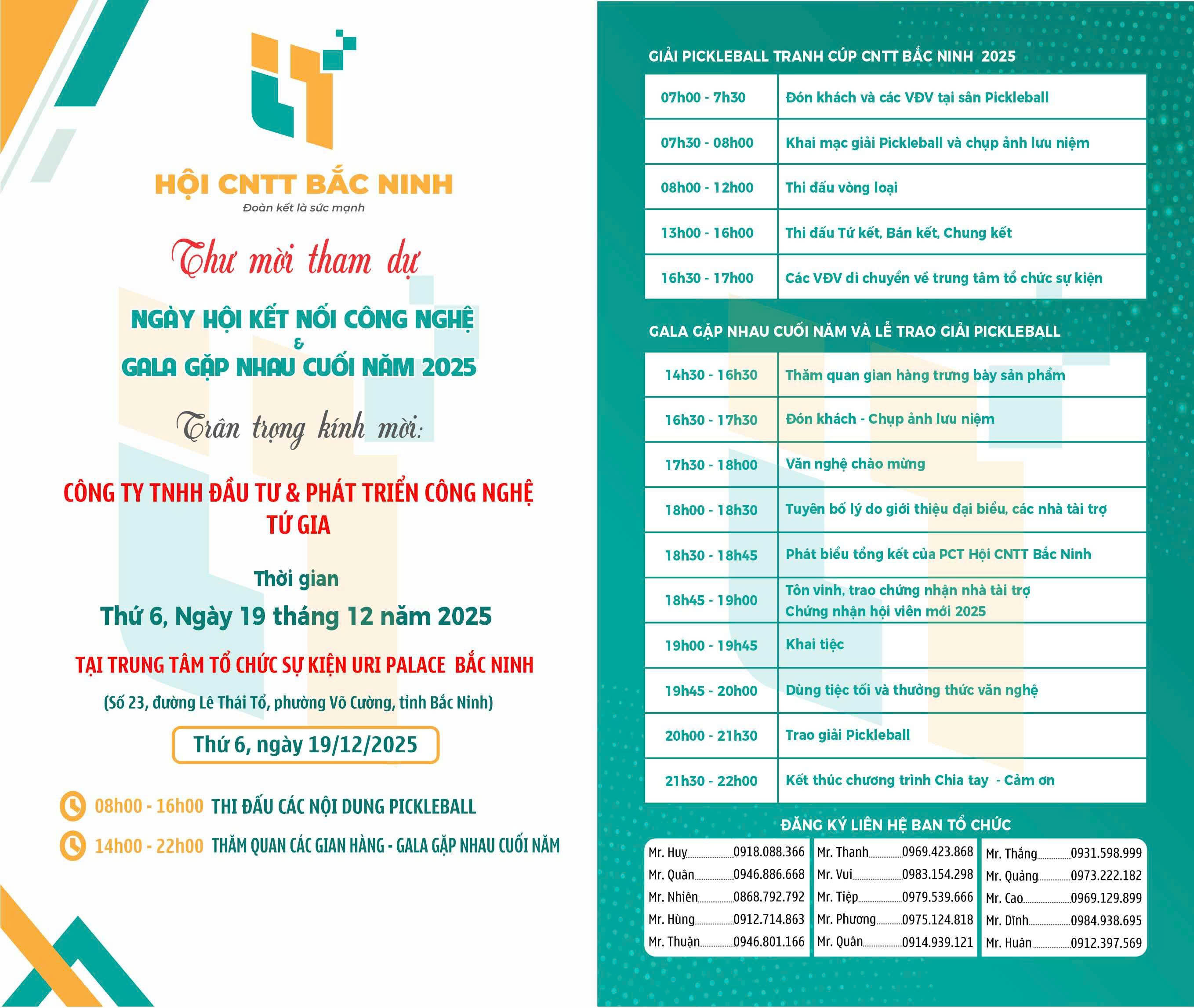 Ngày hội Kết nối Công nghệ và Gala gặp nhau cuối năm 2025 do Hội Công nghệ Thông tin Bắc Ninh tổ chức là một trong những sự kiện chuyên môn thường niên được cộng đồng công nghệ quan tâm. Chương trình được xây dựng với mục tiêu tạo ra môi trường giao lưu, chia sẻ và cập nhật xu hướng công nghệ mới, đồng thời thúc đẩy kết nối giữa doanh nghiệp, chuyên gia và các tổ chức hoạt động trong lĩnh vực CNTT.