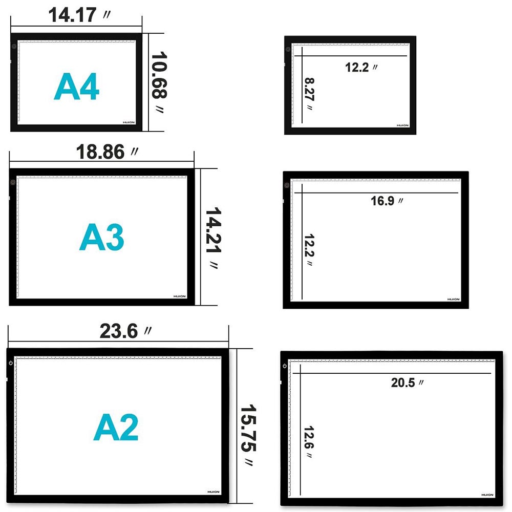 Bảng hắt sáng siêu sáng Huion H-A2 LED : Bảng sáng Huion khổ A2 sử dụng đèn LED siêu sáng để có thể được nhìn xuyên qua giấy rất dày. Kiểu dáng mỏng & nhỏ gọn. Chân cắm USB. Hỗ trợ can nét rất tốt. Thích hợp cho các hoạ sĩ tatoo, hoạ sĩ truyện tranh/ hoạt hình, kiến trúc sư, hoạ viên, thư pháp.