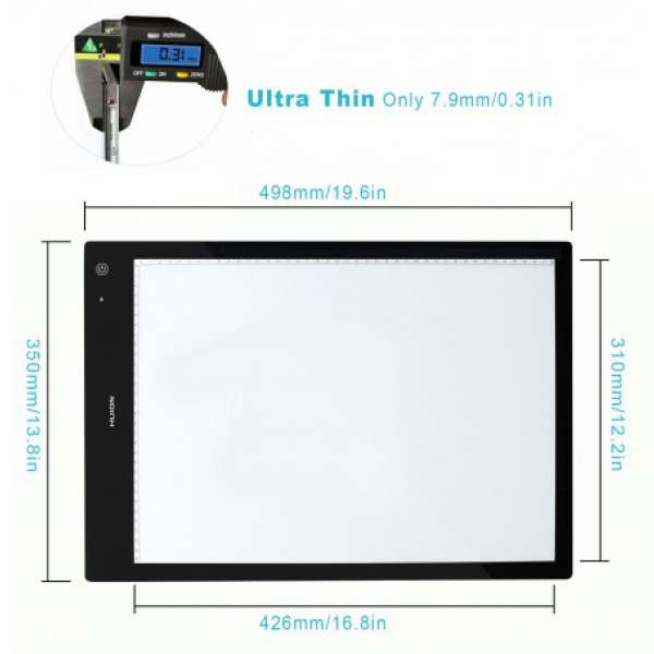 Bảng hắt sáng siêu sáng Huion H-A3 LED : Bảng sáng Huion khổ A3 sử dụng đèn LED siêu sáng để có thể được nhìn xuyên qua giấy rất dày. Kiểu dáng mỏng & nhỏ gọn. Chân cắm USB. Hỗ trợ can nét rất tốt. Thích hợp cho các hoạ sĩ tatoo, hoạ sĩ truyện tranh/ hoạt hình, kiến trúc sư, hoạ viên, thư pháp.
