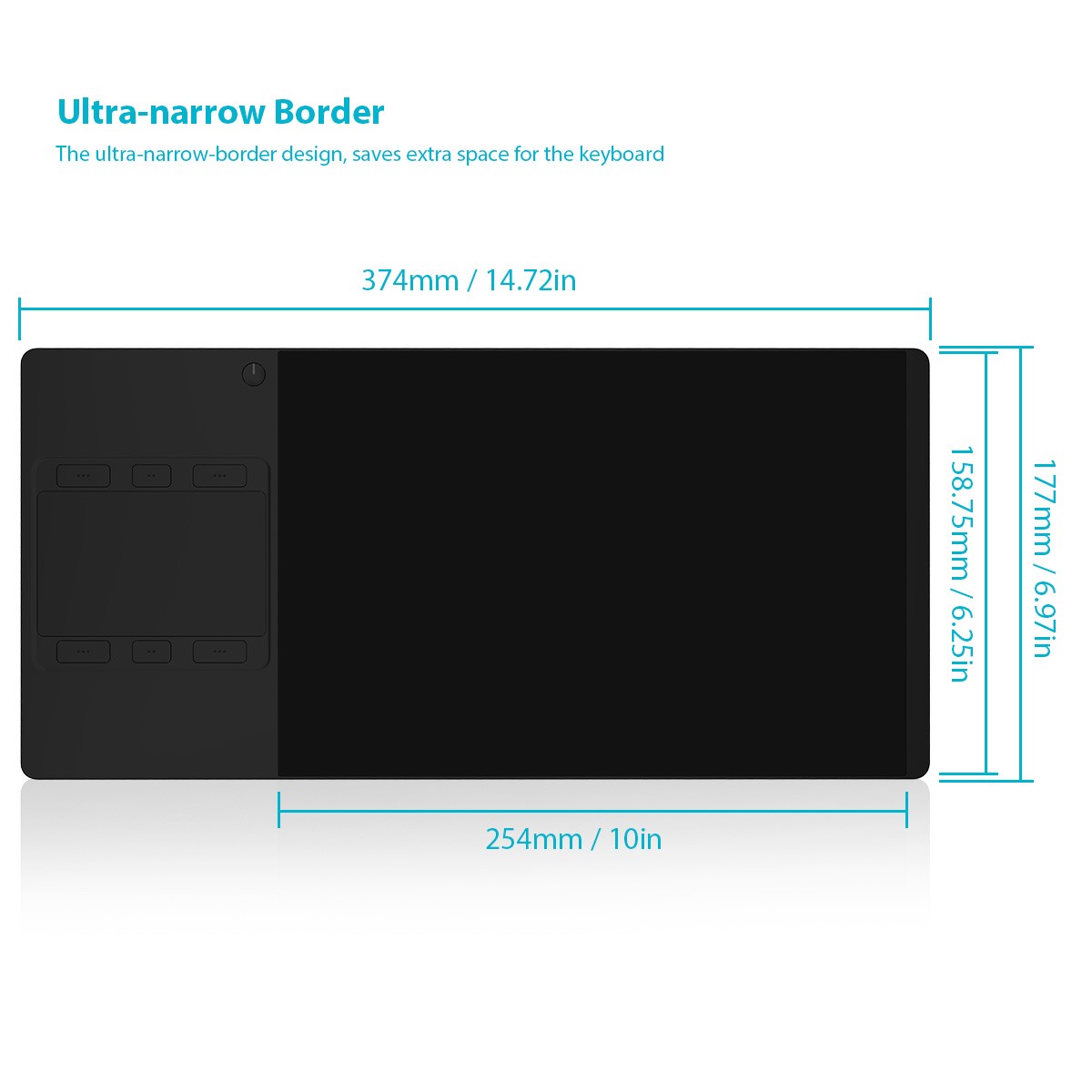 Bảng vẽ Inspiroy G10T có thiết kế khung viền siêu mỏng, mỏng nhất trong tất cả các thương hiệu bảng vẽ có mặt trên thị trường. Inspiroy G10T, tinh tế hơn về thiết kế và hiệu quả hơn khi sử dung, đặc biệt khi không gian làm việc của bạn không đủ rộng cho nhiều thiết bị cần thiết cho công việc sáng tạo.