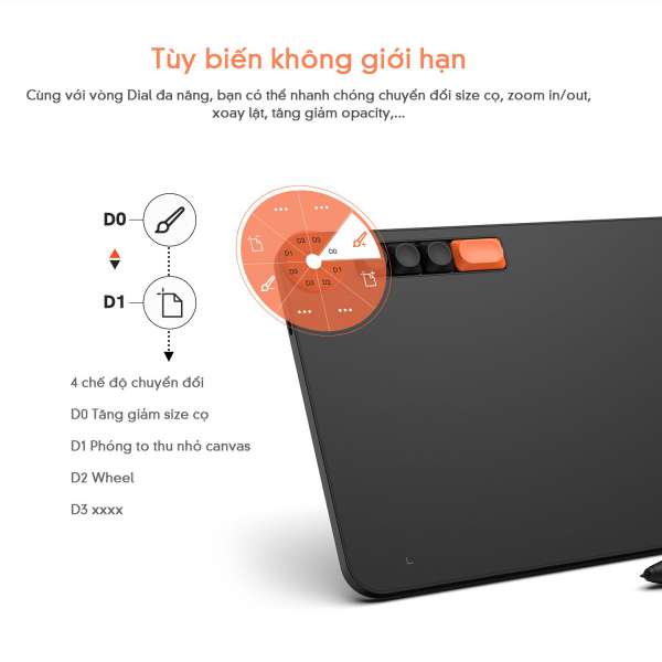 Cảm ứng nghiêng 60 độ cho phép mô phỏng các hiệu ứng bút vẽ như cọ, bút chì, tạo ra những nét vẽ đa dạng và động lực sáng tạo không giới hạn. Chức năng gôm tẩy tiện lợi giúp chỉnh sửa dễ dàng mọi sai sót trong quá trình vẽ. Hơn nữa, việc hỗ trợ vẽ trên nhiều phần mềm phổ biến như Photoshop, Illustrator, SAI,... khiến cho việc sáng tạo trở nên linh hoạt và thuận tiện hơn bao giờ hết.