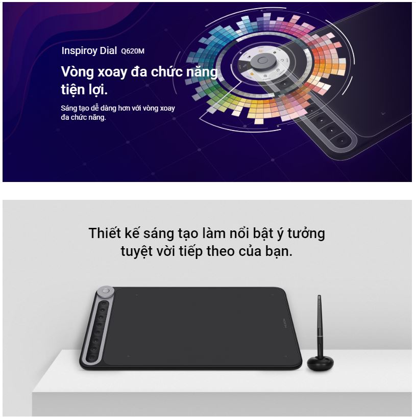 Được làm bằng nhựa ABS và kim loại cao cấp, Inspiroy Dial nổi bật với thiết kế thẩm mỹ độc quyền và tay nghề tinh tế. Bên cạnh đó, khu vực hoạt động 10,5x6,5 inch đảm bảo cho bạn một bức tranh lớn để thể hiện sự sáng tạo.