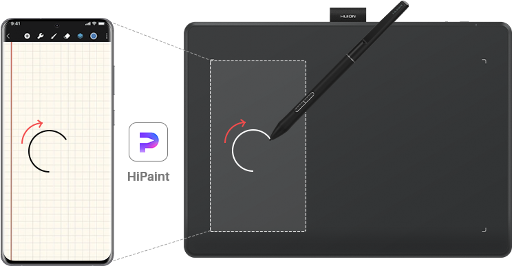 Chúng tôi đã hợp tác với Hipaint để mang đến trải nghiệm vẽ di dộng tốt hơn. Khi bạn kết nối với điện thoại hoặc máy tính bảng Android với Inspiroy Frego qua Hipaint