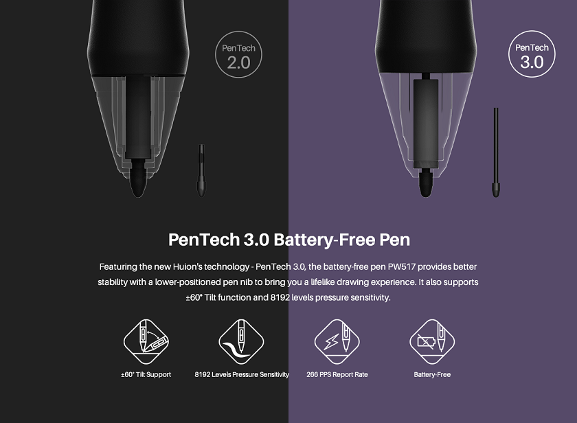 | Bút vẽ | PW517, cảm ứng từ, không pin |