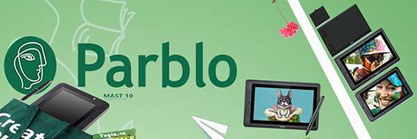 Bảng vẽ Parblo Mast10 không cần nguồn cấp điện rời, màn hình IPS 10.1in, tỷ lệ 16:10, HD 1280×800, 75% Adobe RGB, độ phân giải bảng vẽ 5080lpi, bút vẽ không pin 8192 mức lực nhấn, kết nối HDMI/USB-C