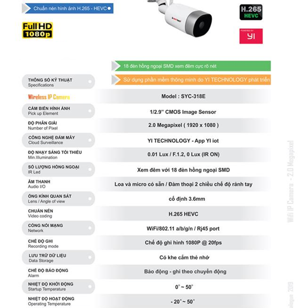 - SYC-318E có khả năng lưu hình trên điện toán đám mây 24h/7 ngày mọi lúc mọi nơi.