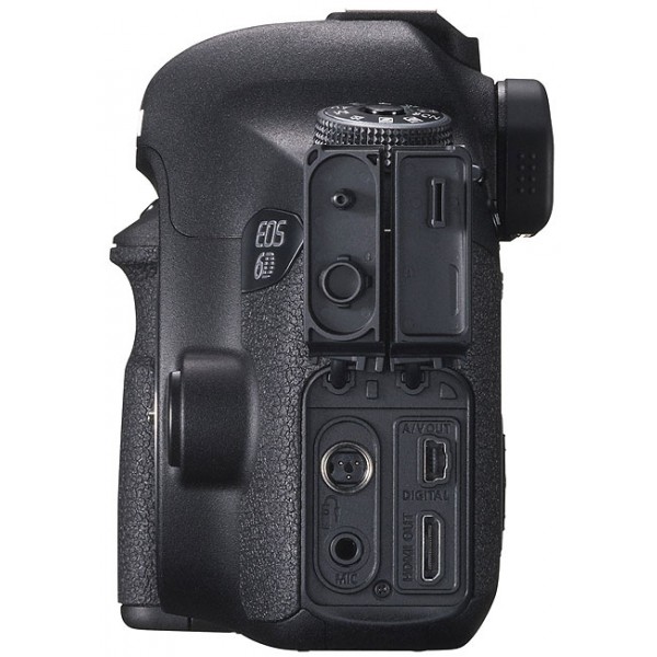 - Thiết kế của 6D mang hơi hướng ảnh hưởng từ 60D nhưng lại thừa hưởng một số nét mới của 5D Mark III. Đầu tiên là bánh xe chế độ có thêm nút khóa cũng như công tắc nguồn tích hợp ngay bên dưới. Ngoài việc bỏ cần chỉnh joystick, 6D còn được thay đổi cách phóng lớn hình ảnh bằng một nút duy nhất phía sau và điều chỉnh độ phóng đại bằng bánh xe điều khiển bên trên.