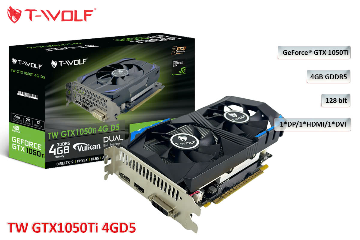 Card màn hình T-WOLF GTX 1050Ti 4GB GDDR5 V2 - Hàng Chính Hãng