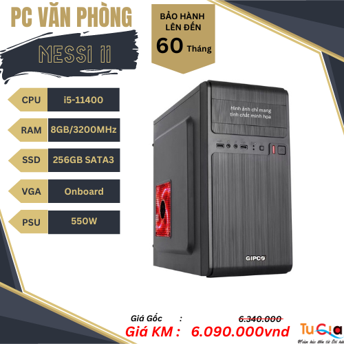 | STT | Cấu hình PC Tứ Gia MESSI II (i5-11400/RAM 8GB/SSD 256GB) | 6.340.000 | 6.090.000 | |