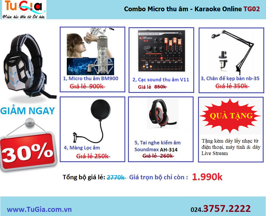 Tứ gia computer gửi tới các bạn Combo thu âm livestream giá chỉ 1.990.000đ gồm có: