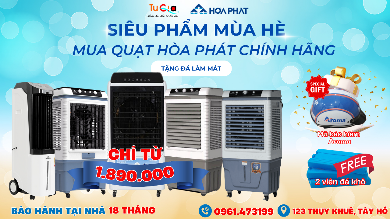 "Quà Tặng Mát Lạnh" Đi Kèm: Mua quạt điều hòa Hòa Phát ngay hôm nay tại Tứ Gia, bạn còn nhận ngay 02 viên đá khô làm mát, 01 mũ bảo hiểm Aroma cực kỳ hấp dẫn!