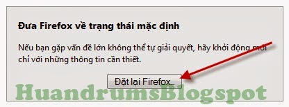Sao khi xóa các tiện ích mở rộng đi ta tiến hành reset lại firefox như sau: