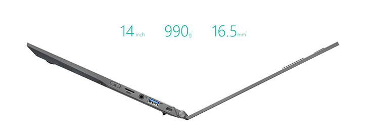 Với trọng lượng chưa đến 1kg cùng kích thước mỏng chỉ 16,5mm , Laptop Gigabyte tôn vinh đặc điểm của dòng sản phẩm Ultra U4 là laptop mỏng nhẹ, thuận tiện di chuyển và làm việc mọi lúc mọi nơi.