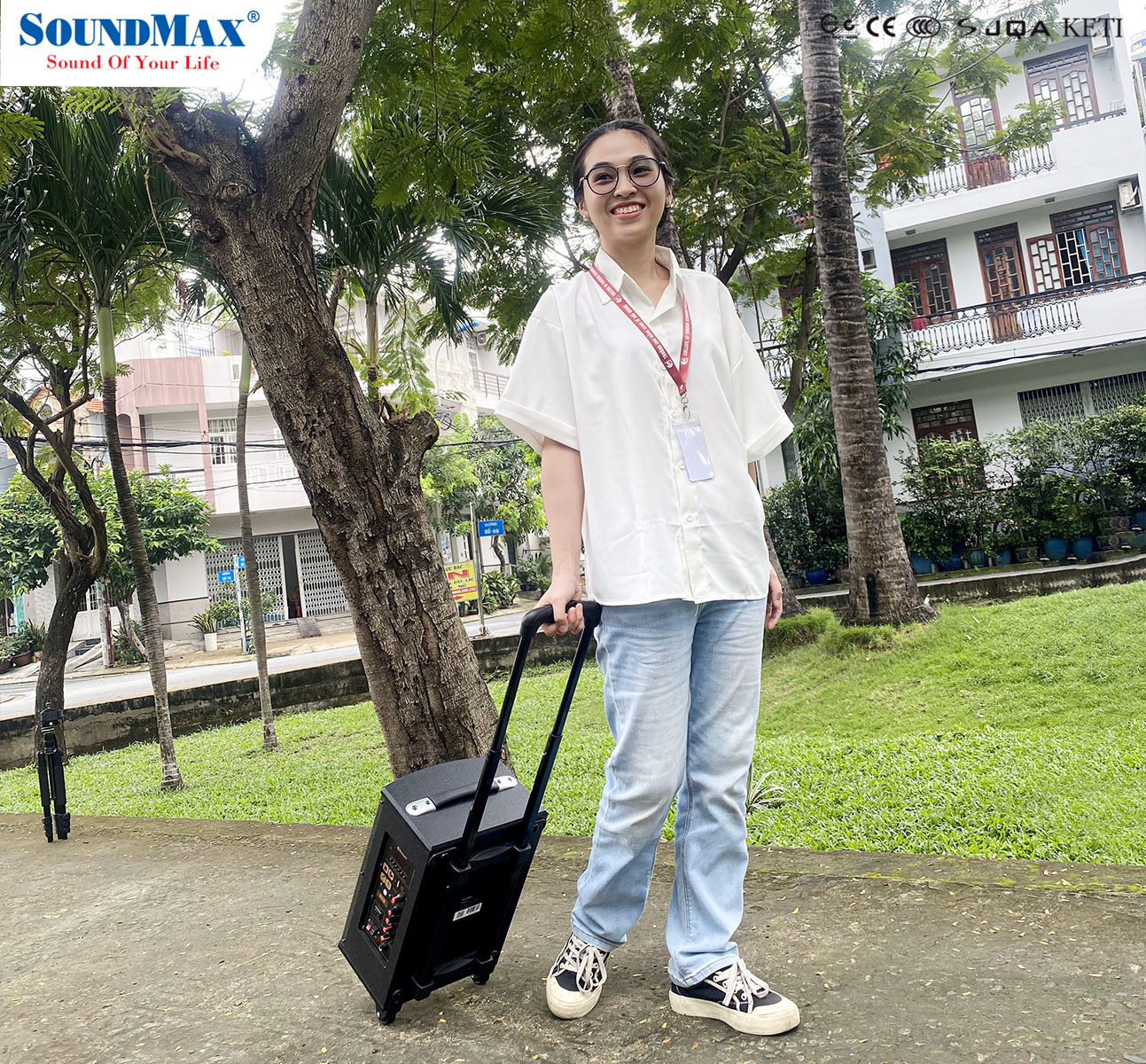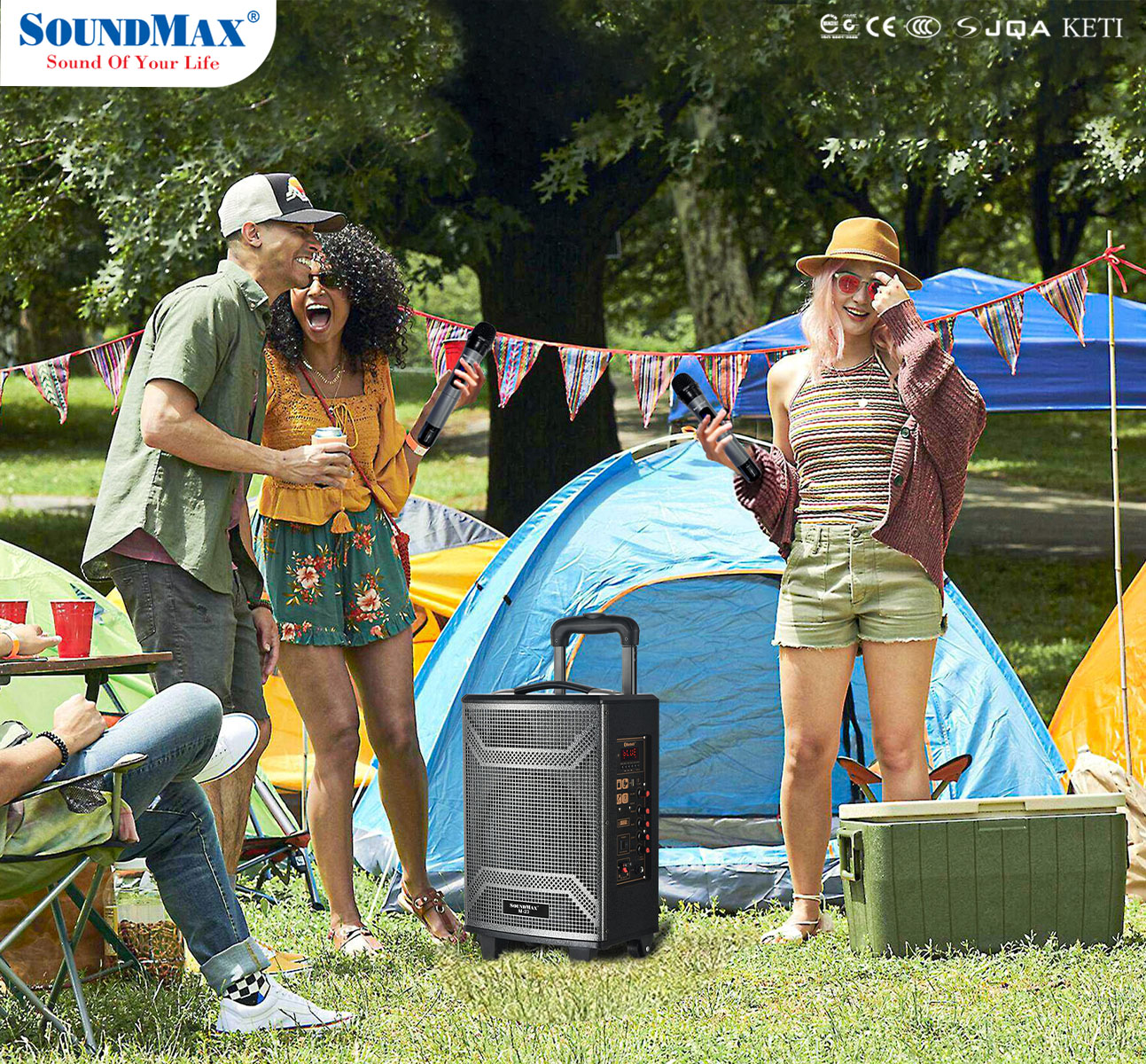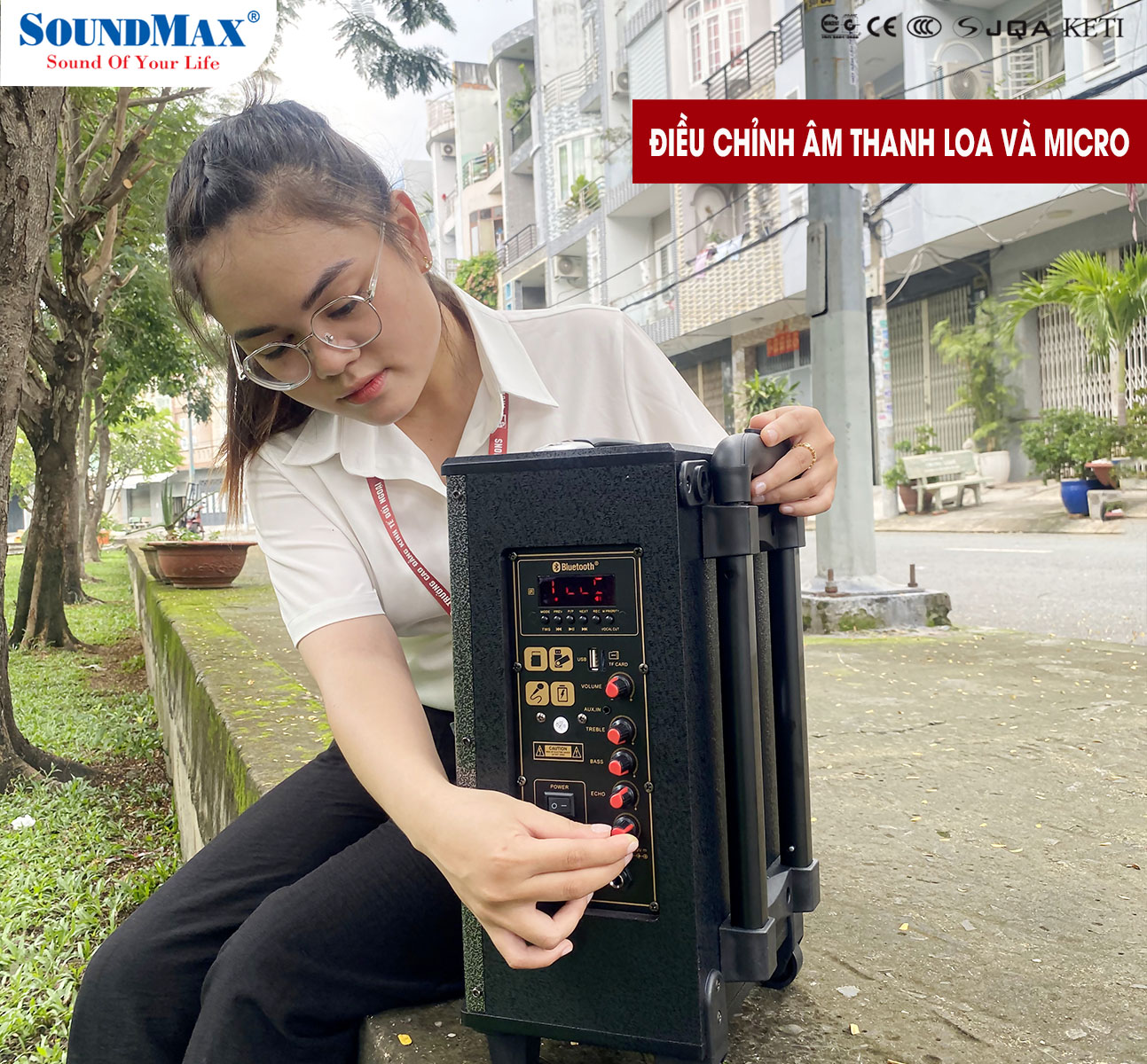 Soundmax M-6 là mẫu loa có thiết kế tựa như một chiếc vali kéo hướng đến những khách hàng cần một bộ loa đa năng, có thể di chuyển dễ dàng và quan trọng là có thể cùng hát với nhau trong những lần sum họp gia đình, bạn bè.