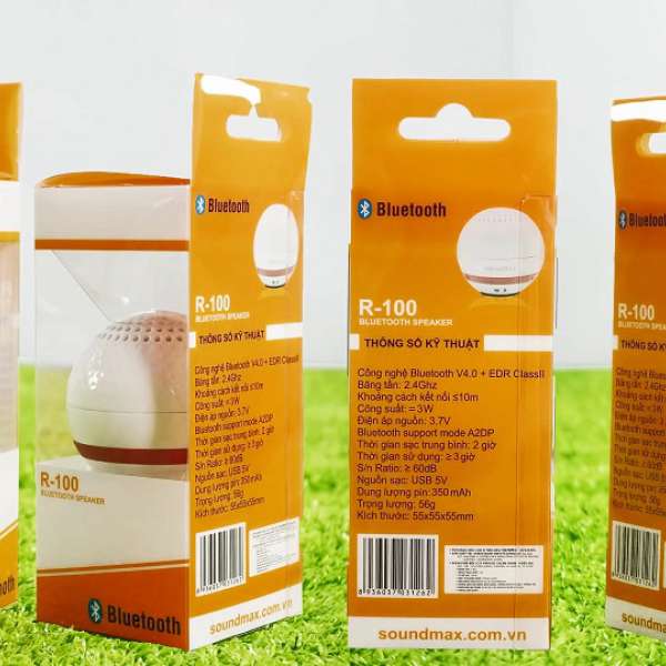 R-100 là mẫu loa không dây sử dụng công nghệ Bluetooth 4.0 + EDR (hỗ trợ A2DP) với công suất phát 3W. Loa sử dụng nguồn pin sạc tích hợp dung lượng 350mAh và hỗ trợ thời gian "hát" lên đến 3 giờ đồng hồ.