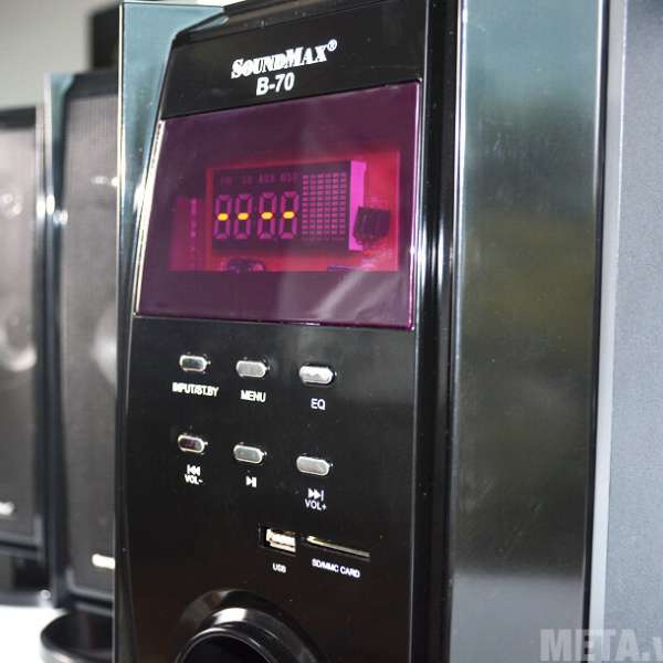 Tựa như những dòng sản phẩm loa đa phương tiện ra mắt gần đây, SoundMax B-70 cũng hỗ trợ chơi nhạc từ các nguồn phát phổ biến ngày nay như Bluetooth, thẻ nhớ SD, USB. Đáng chú ý là SoundMax B-70 còn được tích hợp sẵn ngõ vào Optical và Coaxial, hứa hẹn mang lại trải nghiệm âm thanh đã tai hơn. SoundMax cũng tích hợp một số nút chức năng ngay trên loa sub cho phép người dùng tinh chỉnh trực tiếp ngay trên loa. Loa sub này cũng được trang bị một LCD khá lớn hiển thị các thông tin như nguồn phát được chọn, chỉ báo thay đổi mức âm lượng và các chế độ EQ cài đặt sẵn.