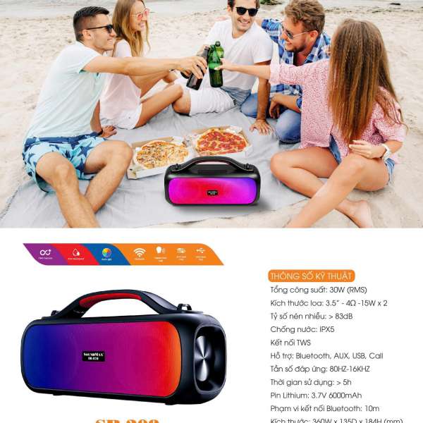 Loa di động SB-206 mang thiết kế cổ điển với quai xách tiện lợi, vỏ loa được làm từ nhựa, loa có khối lượng nhẹ, pin dung lượng lớn giúp bạn có thể mang đi mọi lúc mọi nơi, hỗ trợ chơi nhạc từ hầu hết nguồn phát phổ thông như Bluetooth, USB, thẻ nhớ và AUX.