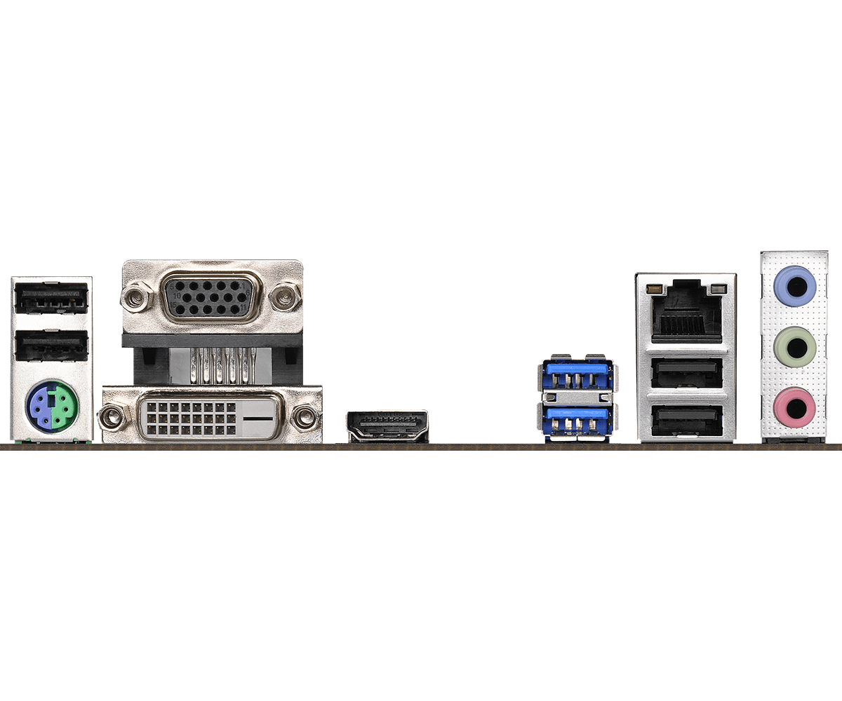 Cổng giao tiếp ngoài 1 x PS/2, 1 x D-Sub, 1 x DVI-D, 1 x HDMI, 4 x USB 2.0, 2 x USB 3.1