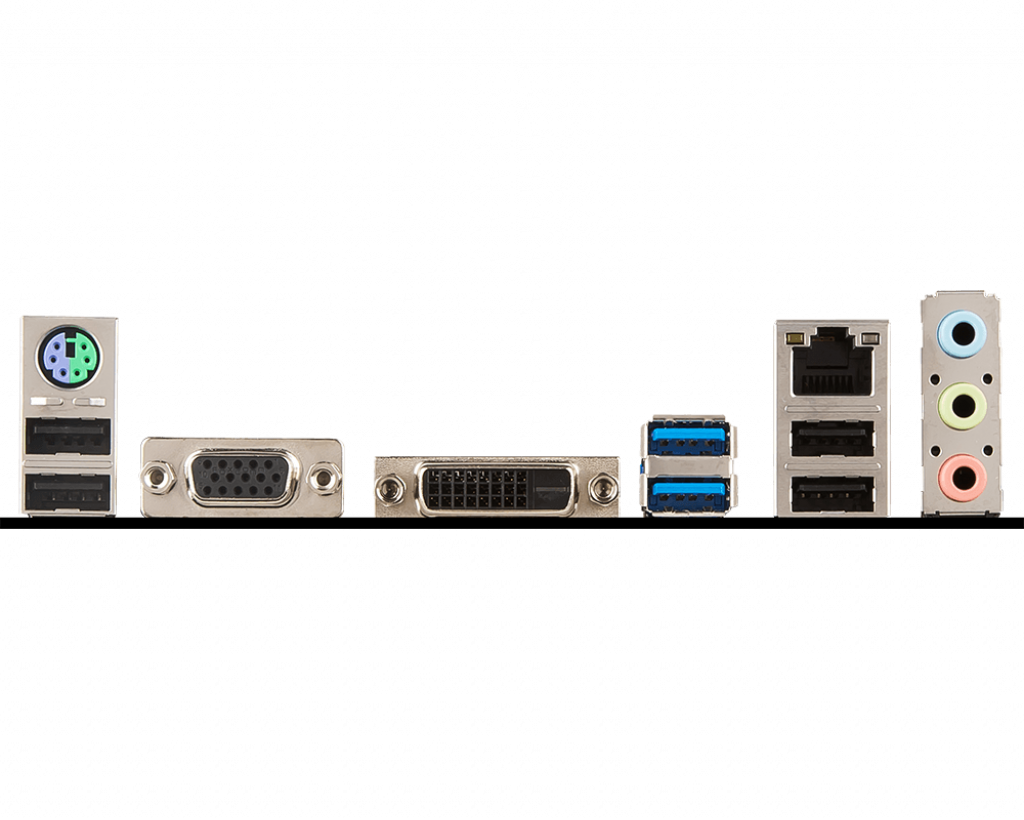 | Cổng giao tiếp ngoài | 1 x PS/2, 1 x D-Sub, 1 x DVI, 4 x USB 2.0, 2 x USB 3.1 |