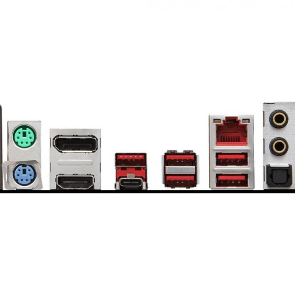 | Cổng giao tiếp ngoài | 2 x PS/2, 2 x antenna connectors, 1 x DisplayPort, 1 x HDMI, 1 x USB 3.1 Gen2 Type-A port, 1 x USB 3.1 Gen2 Type-C port, 4 x USB 3.1 Gen1 Type-A ports, 1 x Optical S/PDIF OUT connector |