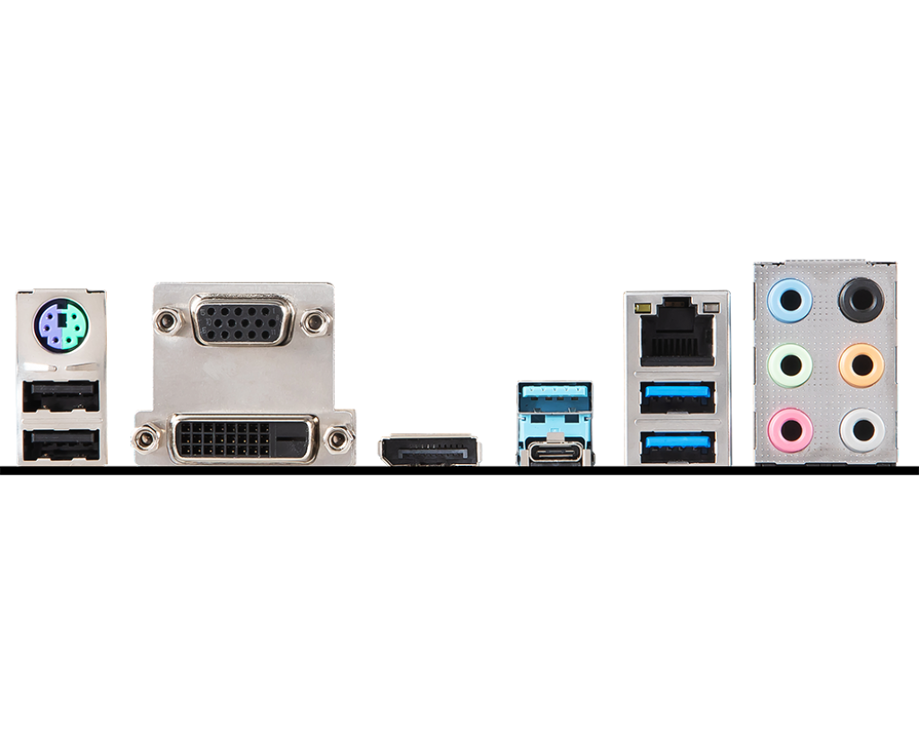 | Cổng giao tiếp ngoài | 1 x PS/2, 1 x VGA, 1 x DVI-D, 1 x Displayport, 1 x USB 3.1 Gen2 Loại A, 1 x USB 3.1 Gen2 loại C, 2 x USB 3.1 |
