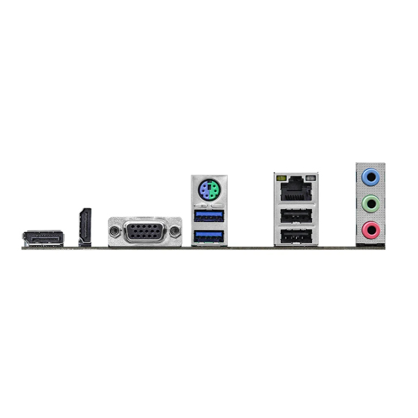 | Cổng giao tiếp ngoài | 2 x Antenna Mounting Points - 1 x PS/2 Mouse/Keyboard Port - 1 x D-Sub Port - 1 x HDMI Port - 1 x DisplayPort 1.4 - 2 x USB 3.2 Gen1 Ports (Supports ESD Protection) - 2 x USB 2.0 Ports (Supports ESD Protection) - 1 x RJ-45 LAN Port with LED (ACT/LINK LED and SPEED LED) - HD Audio Jacks: Line in / Front Speaker / Microphon |
