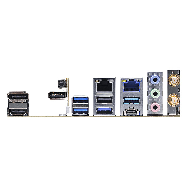| Rear Panel I/O | - 2 x Antenna Ports - 1 x HDMI Port - 1 x DisplayPort 1.4 - 4 x USB 3.2 Gen2 Ports (10 Gb/s) (Supports ESD Protection) - 1 x USB 3.2 Gen2x2 Type-C Port (20 Gb/s) (Supports ESD Protection) - 2 x USB 2.0 Ports (Supports ESD Protection) - 2 x RJ-45 LAN Ports with LED (ACT/LINK LED and SPEED LED) - 1 x BIOS Flashback Button - HD Audio Jacks: Line in / Front Speaker / Microphone |