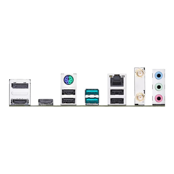 2 x USB 3.2 Gen 2 ports (2 x Type-A ) 4 x USB 2.0 ports (4 x Type-A) 1 x DisplayPort 2 x HDMI® ports 1 x Wi-Fi Module 1 x Intel® 1Gb Ethernet port 3 x Audio jacks 1 x PS/2 Keyboard/Mouse combo port |
