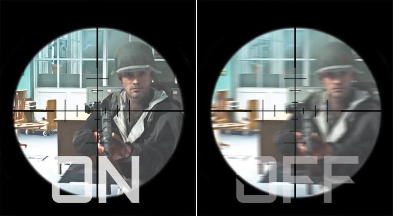 Ổn định hình ảnh - Aim Stabilizer. Tính năng này sẽ làm giảm độ mờ chuyển động, do đó bạn sẽ có hình ảnh rõ nét hơn giúp truy tìm dấu vết của viên đạn và nhắm mục tiêu dễ dàng.