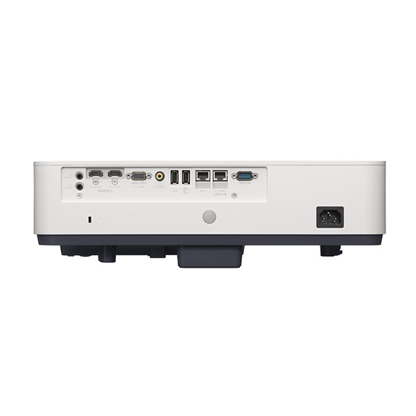 | Input/ Output | INPUT A: RGB / Y PB PR input connector: Mini D-sub 15 pin (female) Audio input connector: Stereo mini jack INPUT B: HDMI input connector: HDMI 19-pin, Digital RGB/Y PB PR, HDCP support Audio input connector: HDMI audio support INPUT C: HDMI input connector: HDMI 19-pin, Digital RGB/Y PB PR, HDCP support Audio input connector: HDMI audio support INPUT D: HDBaseT interface connector: RJ45, 4 play (Video, Audio, LAN(100BASE-TX), RS-232C) VIDEO IN: Video input connector: Phono jack (Composite) OUTPUT: Audio output connector: Stereo mini jack REMOTED-sub 9-pin (male) / RS232C LANRJ45, 10BASE-T / 100BASE-TX USBTYPE-A x 1 (for F/W update), TYPEA for Power supply |