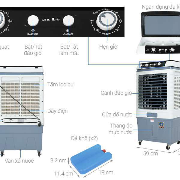 - Chức năng hẹn giờ tiện lợi từ 1 – 18h