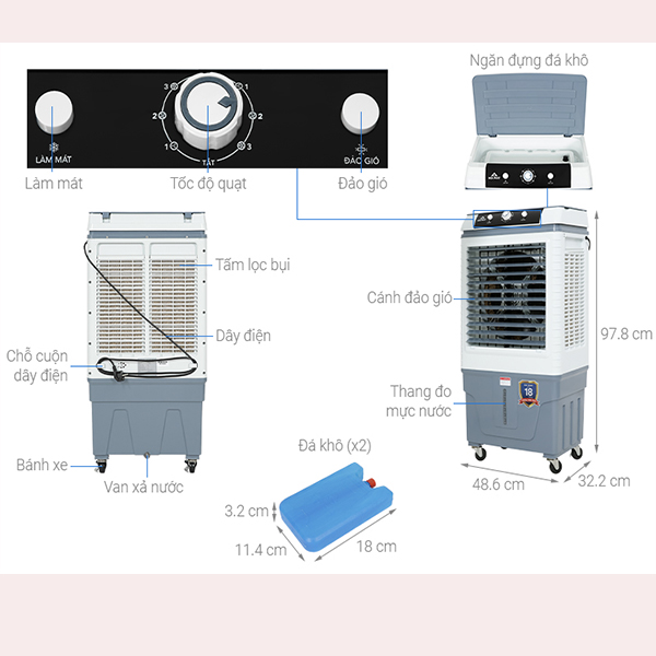 Kích thước (DxRxC): 48.6 x 31.3 x 97.8 cm