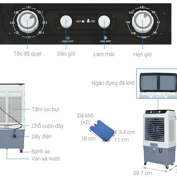 Máy làm mát không khí Hòa Phát HPCF1-062 - Hàng chính hãng