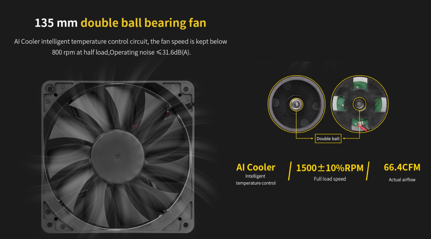 Hệ thống quạt 135mm với vòng bi kép và công nghệ Al Cooler
