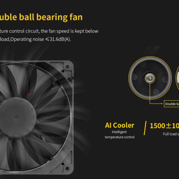 Nguồn GM1000W được trang bị quạt 135mm sử dụng vòng bi kép, đảm bảo độ bền cao và khả năng tản nhiệt tối ưu. Hệ thống này kết hợp cùng mạch điều khiển nhiệt độ thông minh Al Cooler, giúp điều chỉnh tốc độ quạt linh hoạt dựa trên tải nhiệt thực tế.