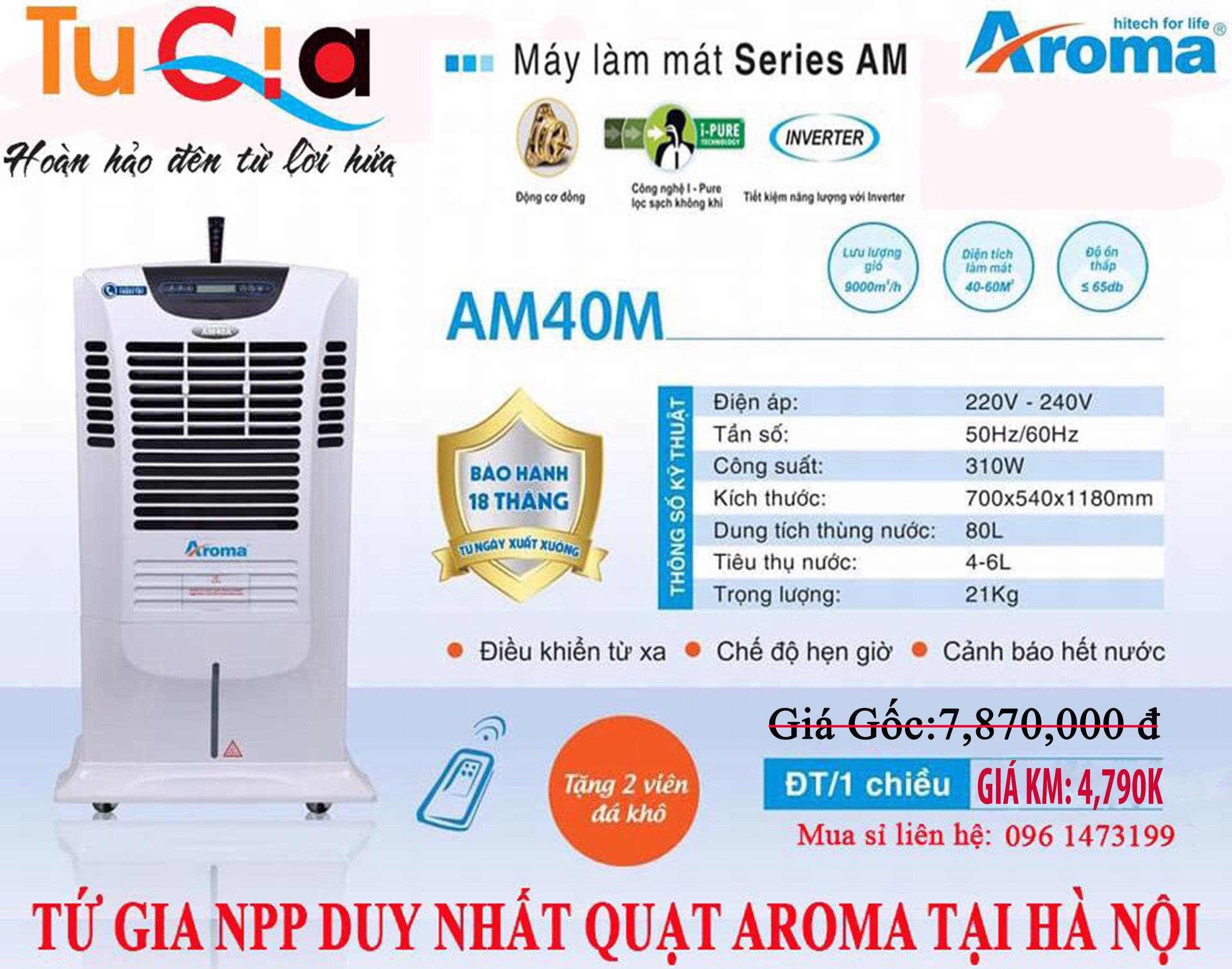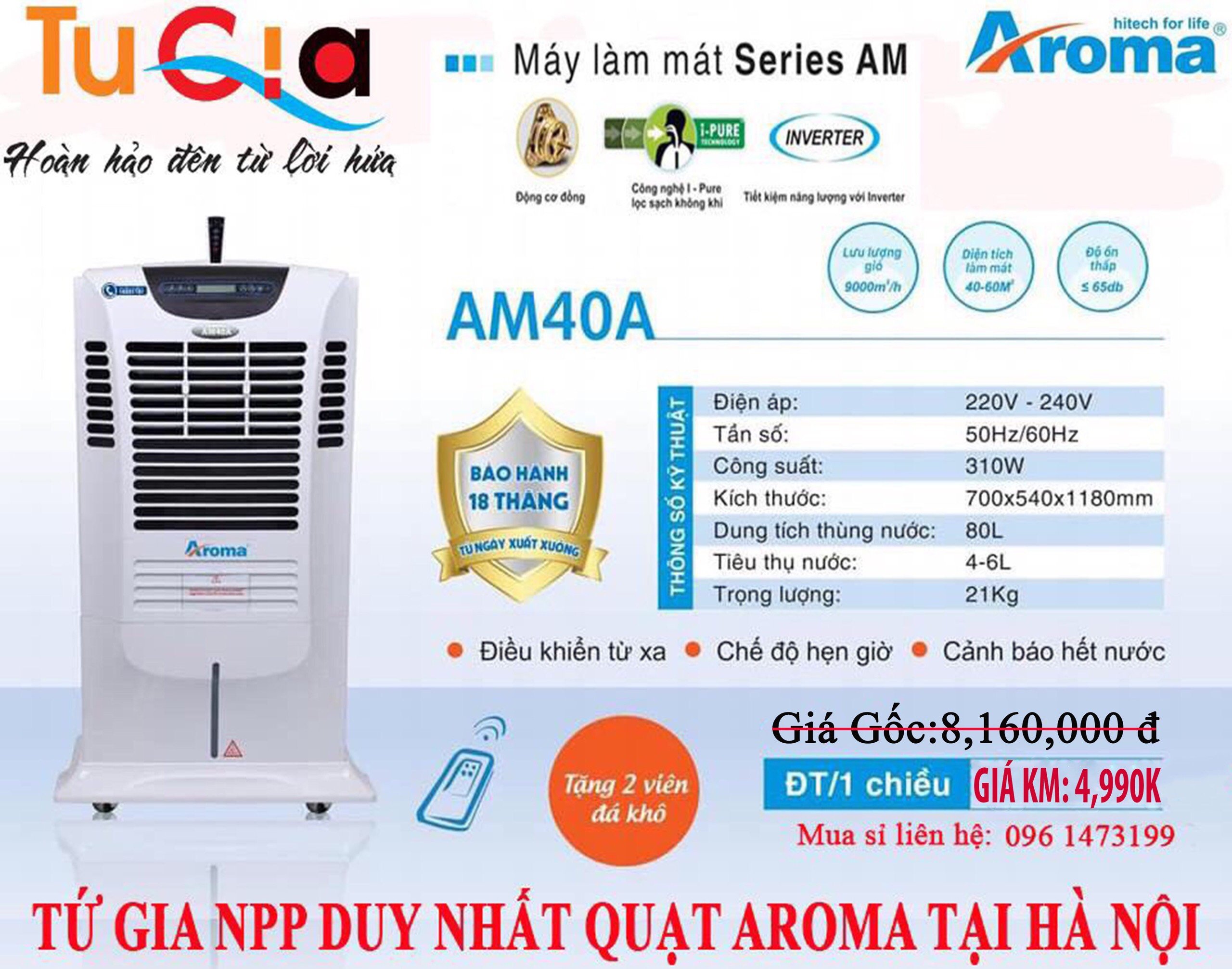 LINK CHI TIẾT SẢN PHẨM AM40A CHÍNH HÃNG : https://tugia.vn/may-lam-mat-aroma-am40a-hang-chinh-hang