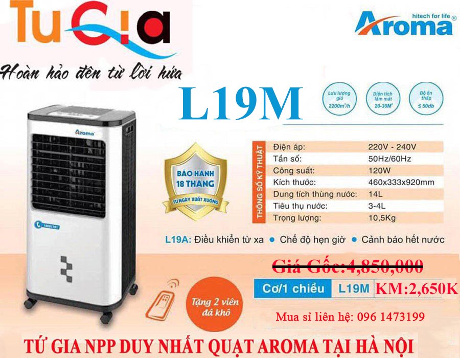 LINK CHI TIẾT SẢN PHẨM L19A CHÍNH HÃNG : https://tugia.vn/may-lam-mat-aroma-l19a-hang-chinh-hang